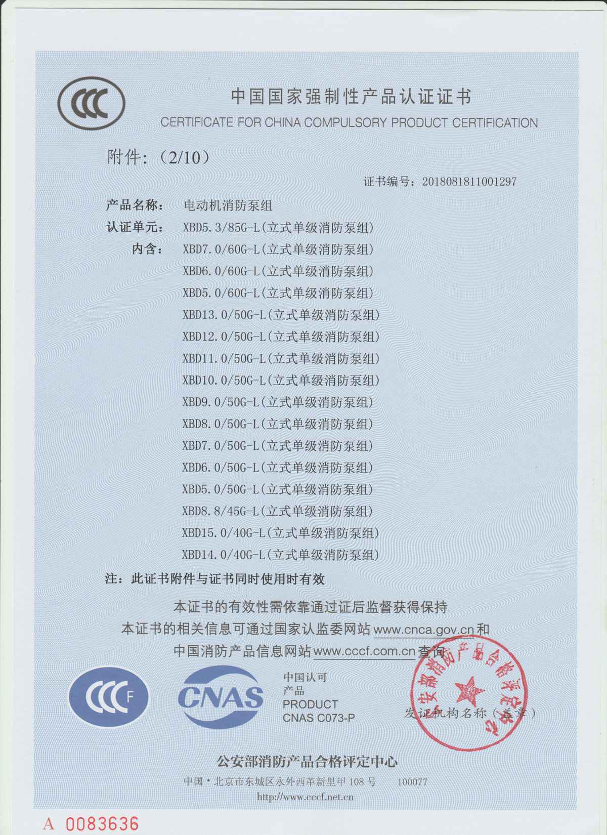 公司生产产品通过ISO9001:2015国际质量体系认证,消防系列产品取得CCCF国家强制性认证证书,通过认证型号规格达500余个,并取得全国工业产品生产许可证,产品经权威机构检测,全部达到规定要求。 公司主营产品有:生活循环泵,消防用泵,污水泵,化工用泵,二次供水设备,控制柜等。产品被广泛应用于石油、化工、冶金、矿山、发电、热力、城市建设、污水处理、消防设施、集中采暖、农业排灌等行业。
